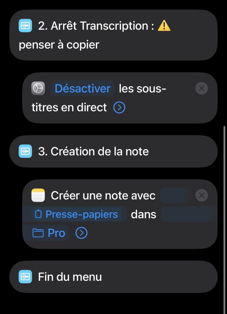 Faites attention à un aspect, il n’y a pas de sauvegarde automatique, le menu fermé, le contenu disparaît. Ensuite vérifiez bien que la transcription est en cours, pas simplement affichée.